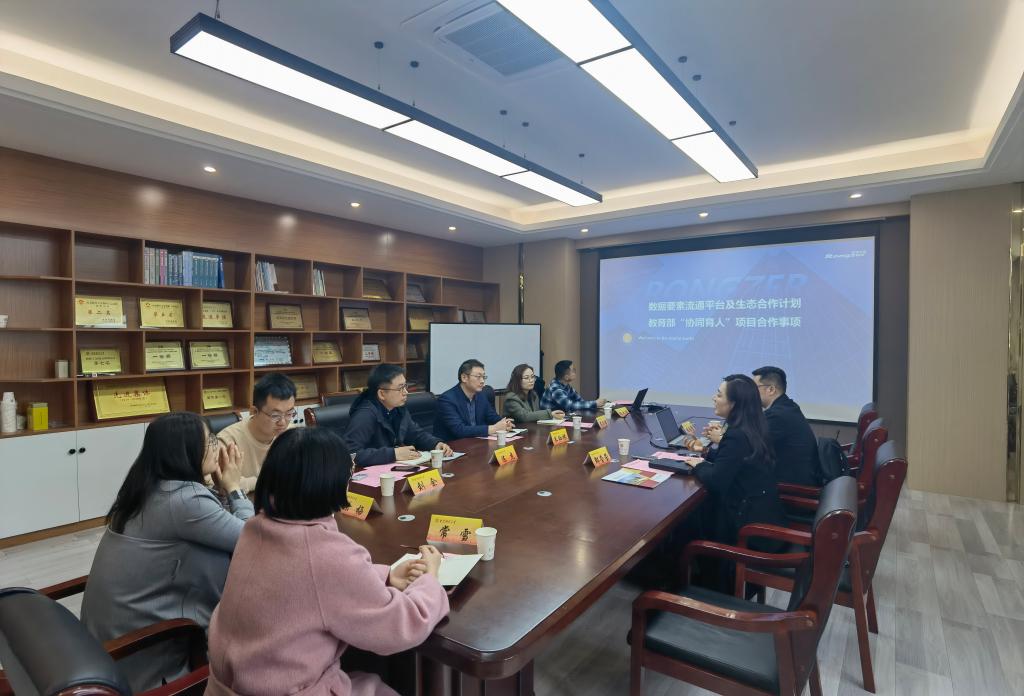 随后,邹莹莹总经理介绍了公司的情况。她从数据要素的价值,数据技术演进,数据要素流通,国家数字战略与实践路径等方面层层展开,讲解了公司在区块链、人工智能等新一代信息技术方面为社会提供数字化解决方案,并在多方面、多领域领跑行业新发展。未来企业将继续保持发展定力、提升综合实力,并实现用数据驱动高校教育治理现代化。她对双方合作表达了强烈期许,希望双方加强交流,深化产学研和育人合作,实现互利共赢。
