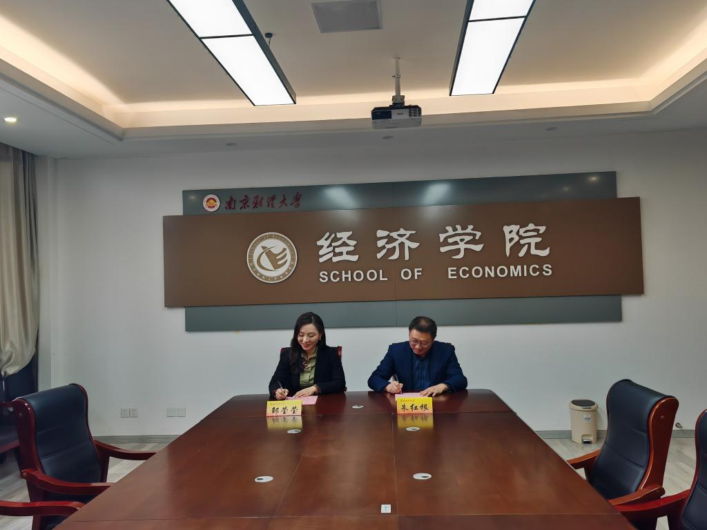 历史沿革、科学研究、人才培养、师资队伍、学科优势等方面详细介绍了学院情况。朱院长表示学院近年来整体发展迅速,全院上下始终围绕国家战略和江苏经济发展需要,不忘初心、砥砺奋进,在人才培养、科学研究、社会服务等方面取得了一系列喜人的成绩,为双方合作办学奠定了良好基础。他希望,双方充分发挥各自办学优势和就业优势,共同致力于培养创新型和学科交叉复合型数字经济人才,深化合作,实现共赢。