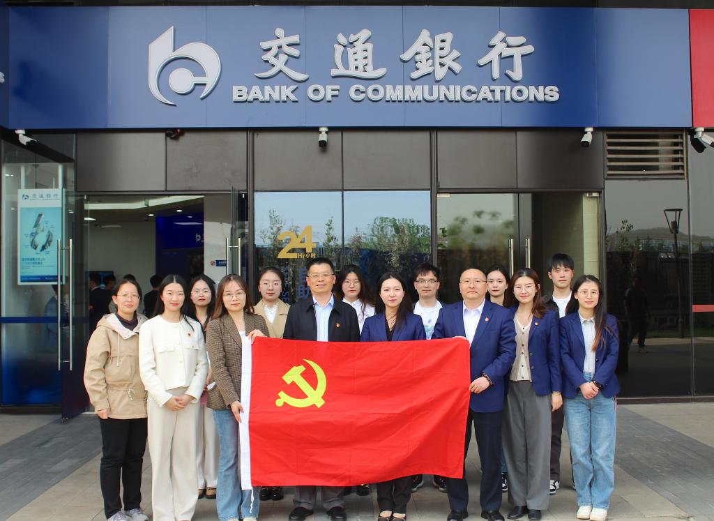 座谈会后,与会领导、老师和学生代表参观了交通银行栖霞中心支行营业部。