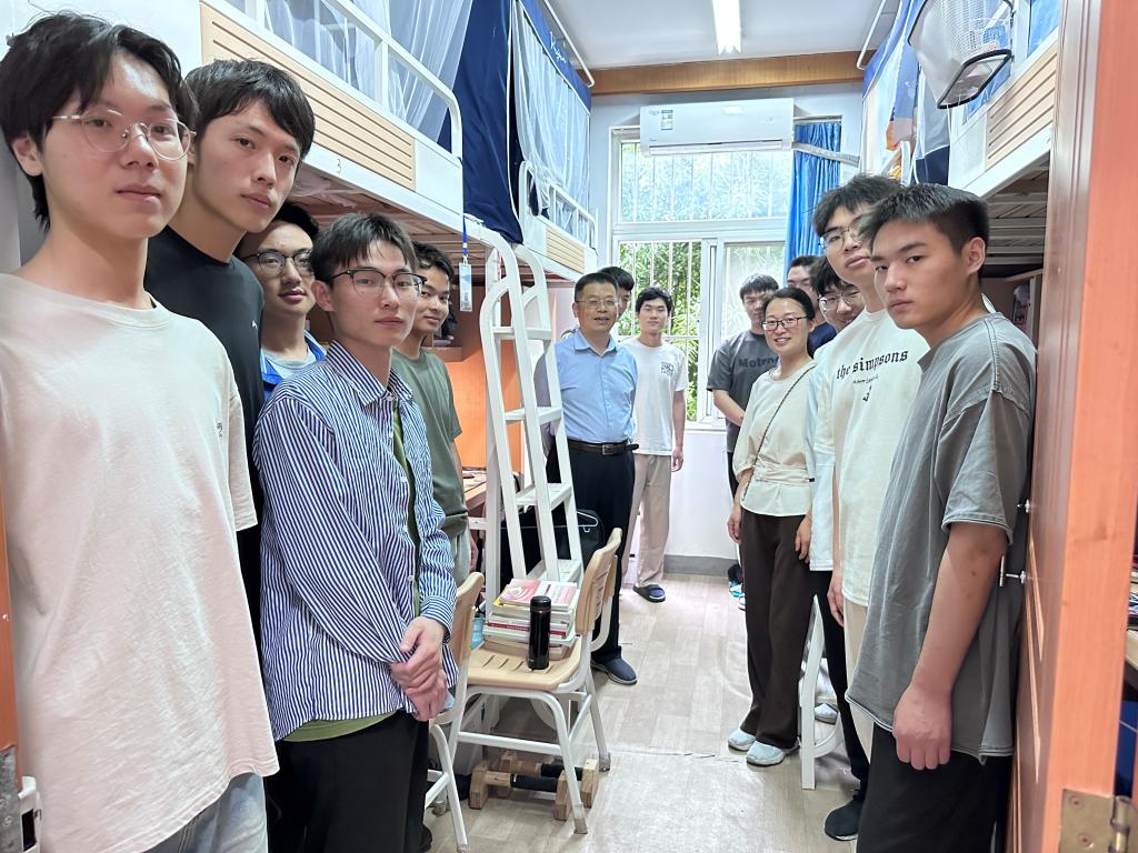 在学生宿舍,张圣兵书记和同学们亲切交流,了解学生们的学习生活情况与思想动态。他介绍学校学院关心关爱学生、助学生成长成才的各项措施,了解当前情况下同学们的学业、生活、心理等方面的困难,倾听同学们的意见和建议。张圣兵书记希望同学们确立目标,找好大学学习方向,珍惜时间,做好大学学业规划,克服困难,走稳走好大学之路。要不负青春,不负韶华,不断奔跑,奋力拼搏,争取跑出当代青年最好的成绩。