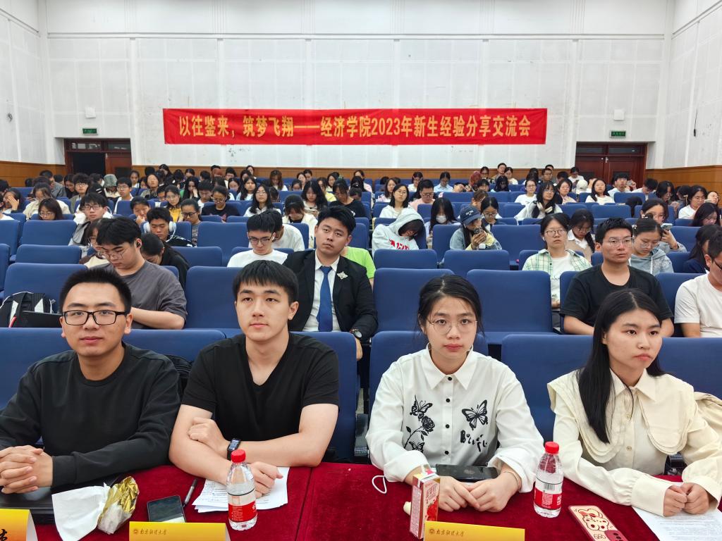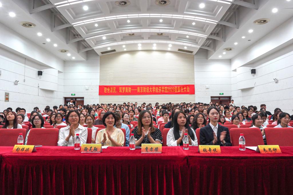 上好铸魂育人第一课。9月8日晚,学院党委副书记贾亦璞老师在德经楼报告厅面向全体新生开展思政第一课,通过详细介绍校情院情、行业发展现状、大学生活学习特点等方面,教育引导全体新生厚植家国情怀、听党话跟党走,坚定理想信念、明确奋斗目标,扎实学好本领、担当时代使命。她代表学院对2023级新生表示最衷心的祝贺与最热烈的欢迎,并通过“三个色”向全体新生提出了三点嘱托:一是用爱国和信仰照耀生命本色;二是用吃苦和奋斗铸就生命底色;三是用梦想和行动点亮生命亮色。“大鹏一日同风起,扶摇直上九万里”,她希望同学们能够借助学院提供的广阔平台,乘势而上、踔厉奋发、不懈努力,筑牢经济学科基础,谱写新的篇章。
