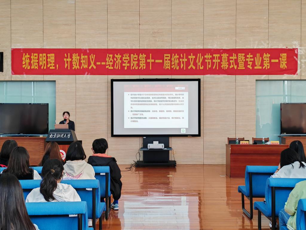 上好专业认知教育第一课。10月8日下午,学院于图书馆世界之窗举办了“统据明理,计数知义”第十一届统计文化节开幕式暨专业第一课。程恭品老师讲授统计学专业第一课,从“统计学”的定义引入,从统计学的历史与发展过程着手,以统计学中的佼佼之辈为榜样,激发同学们的兴趣,同时对“统计文化”展开诠释,用实际事例引导同学们树立正确的价值观,并结合经济、文化、社会、心理等众多领域,揭示统计学对于人生的重要意义和宝贵价值,让新生全面了解统计专业的学习要求、就业行业、就业趋势、职业发展路径等,引导新生合理做好学业规划,树立专业自信,增强学习动力。