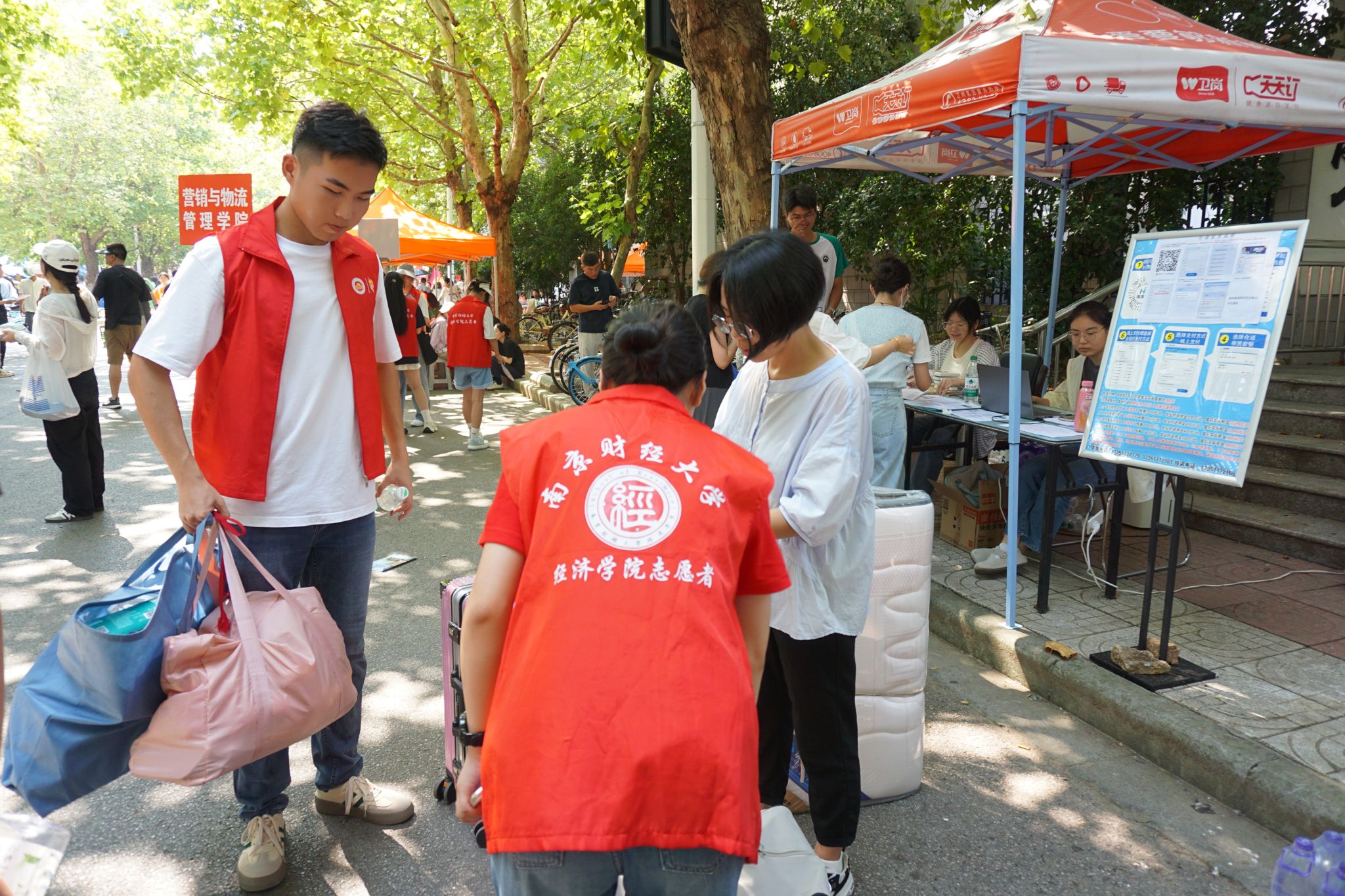 志愿奔赴,为“新”分忧。在此次迎新活动中,学院共招募90余名志愿者参与迎新、军训、体检等各项迎新志愿服务工作,各项工作有序开展。为保障迎新工作的顺利开展,志愿者们早已就位,投身志愿服务、后勤保障工作,咨询答疑、指路引导、秩序维护、行李转运……处处涌现着学院师生党员、志愿者们的身影,努力为初入校园的新同学提供全方位、全天候、全过程的服务与支持,将南财志愿精神之火代代传承。