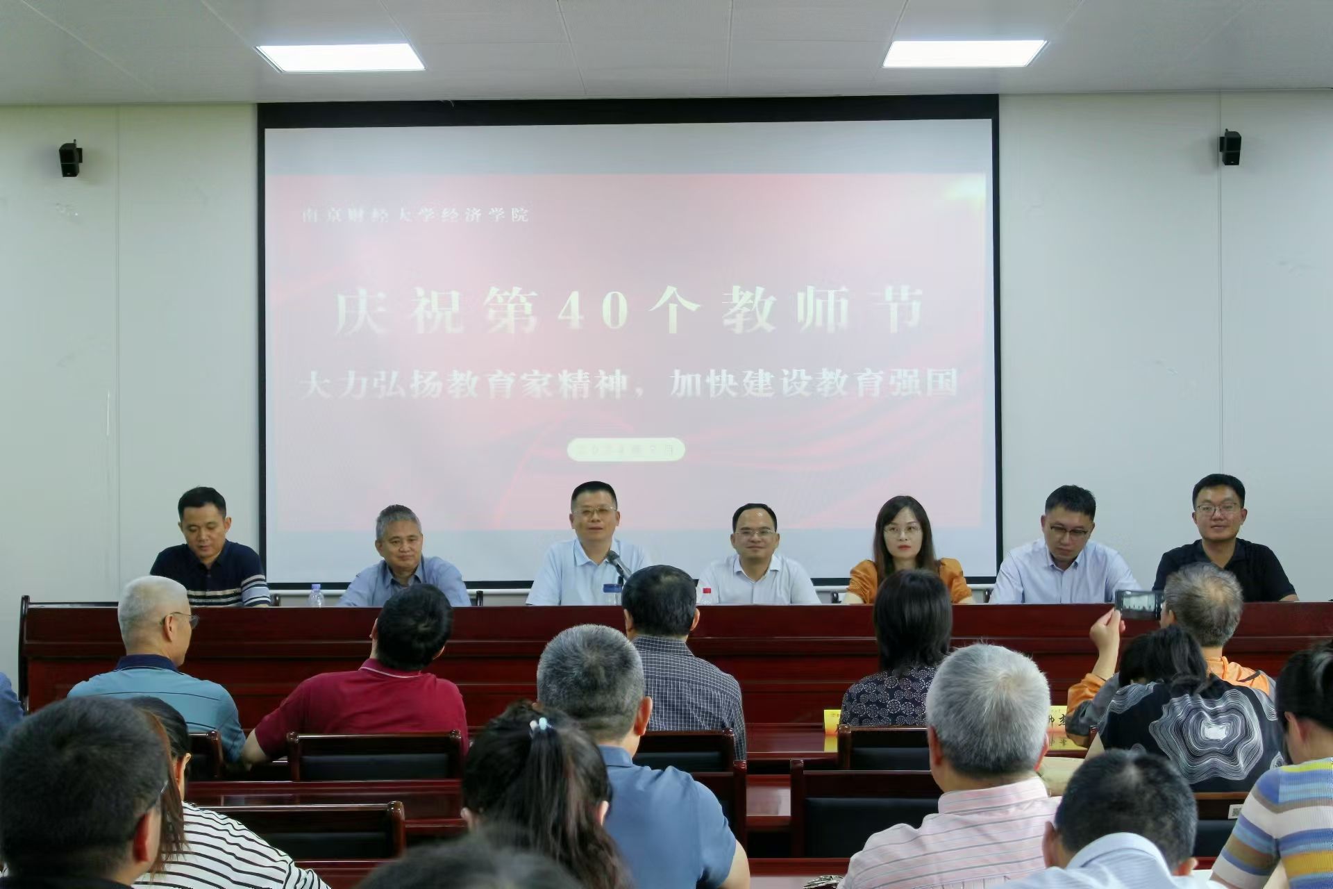 于德经楼举行退休教师荣休仪式暨庆祝第40个教师节新老教师座谈会。学院全体班子成员、教师参加本次仪式和座谈会。