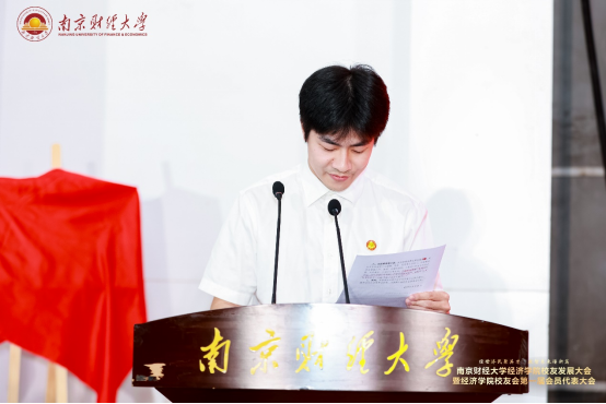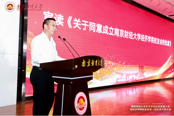 对外联络处副处长、校友总会秘书长王冲同志宣读《关于同意成立花都影视