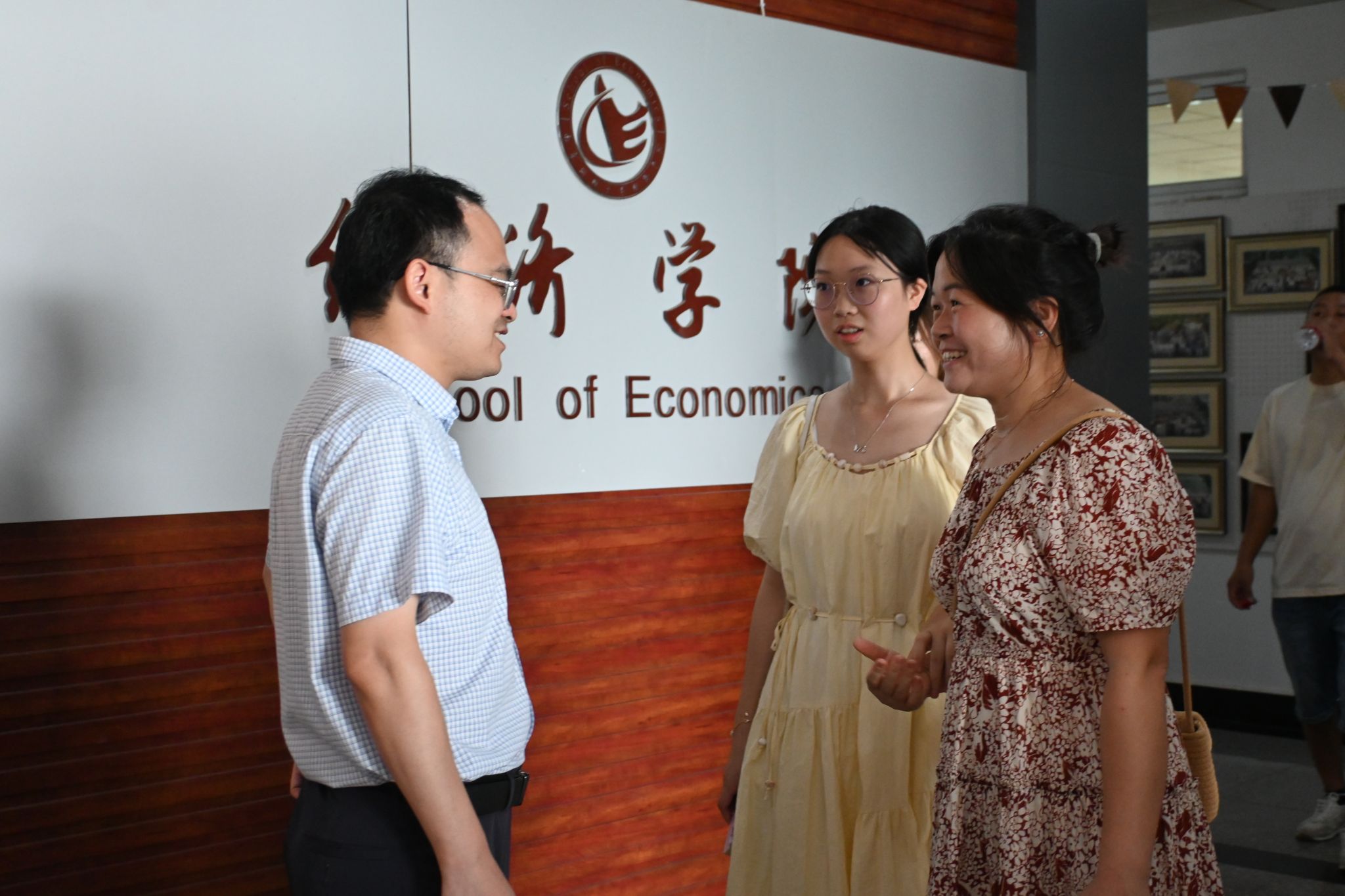 领导慰问,温暖入学。上午,学院党委书记张圣兵、院长刘小峰、党委副书记贾亦璞及其他领导高度重视新生报到工作,早早便来到迎新现场了解新生接待工作与准备进展,认真查看新生报到每个环节,亲切慰问一线工作人员,并与现场师生志愿者、辅导员一起参与迎新工作。院领导们与新生亲切交谈,热情问候报到新生并为其耐心答疑,为绿色通道学生送去暖心大礼包,与大家亲切合影,欢迎他们在南财开启人生崭新篇章。