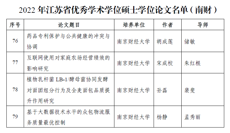 朱红根教授指导、2021届西方经济学专业毕业研究生宋成校同学撰写的学位论文《互联网使用对家庭农场经营绩效的影响研究》获评2022年江苏省优秀学术学位硕士学位论文。