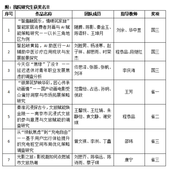 近日,“正大杯”第十五届全国大学生市场调查与分析大赛(研究生组)江苏赛区决赛成绩公布,花都影视 研究生经过奋力拼搏,获得全国三等奖3项、江苏省一等奖1项、江苏省二等奖1项、江苏省三等奖2项,获奖数量位居全省前列,展现了花都影视 研究生的竞争能力和创新能力。