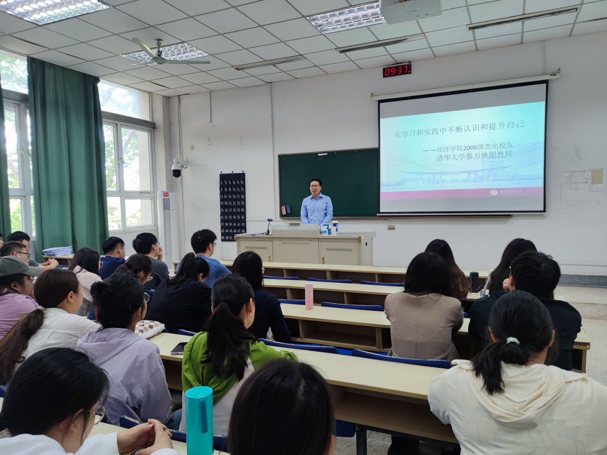 蔡万焕副教授率先分享了他在学术追求与职业选择方面的经验。他着重强调了自我定位的关键作用,鼓励学生积极进行自我的“投入产出分析”,以此了解自己是否契合学术道路。蔡老师坦言,读博之路并非坦途,要充分利用学校提供的平台,依靠自身努力不断前行。在清华博士后期间,他就是凭借清晰的自我定位和潜心科研,两年内成功发表12 篇论文。蔡老师以自身求学和职业发展经历为生动案例,深入浅出地阐述了如何通过持续学习和实践来认识自我、提升自我,同时着重强调了找准适合自己的职业赛道的重要意义。