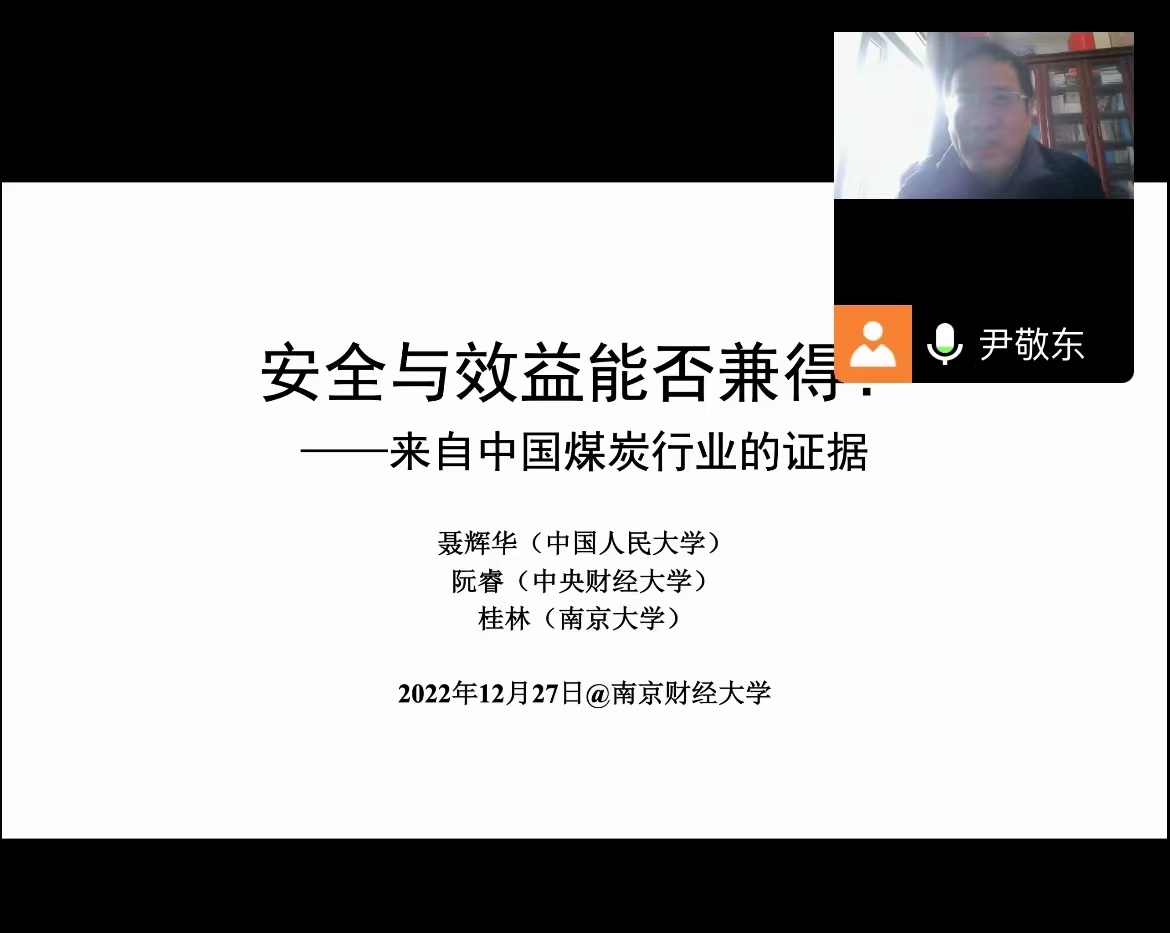 师生与聂辉华教授就样本选择问题以及结论的经济含义等方面做出了进一步的讨论。尹敬东教授对此次报告做出总结,此篇文章紧扣现实问题,在经济效益和生产安全难题上做出新的贡献,是一场精彩的学术报告。