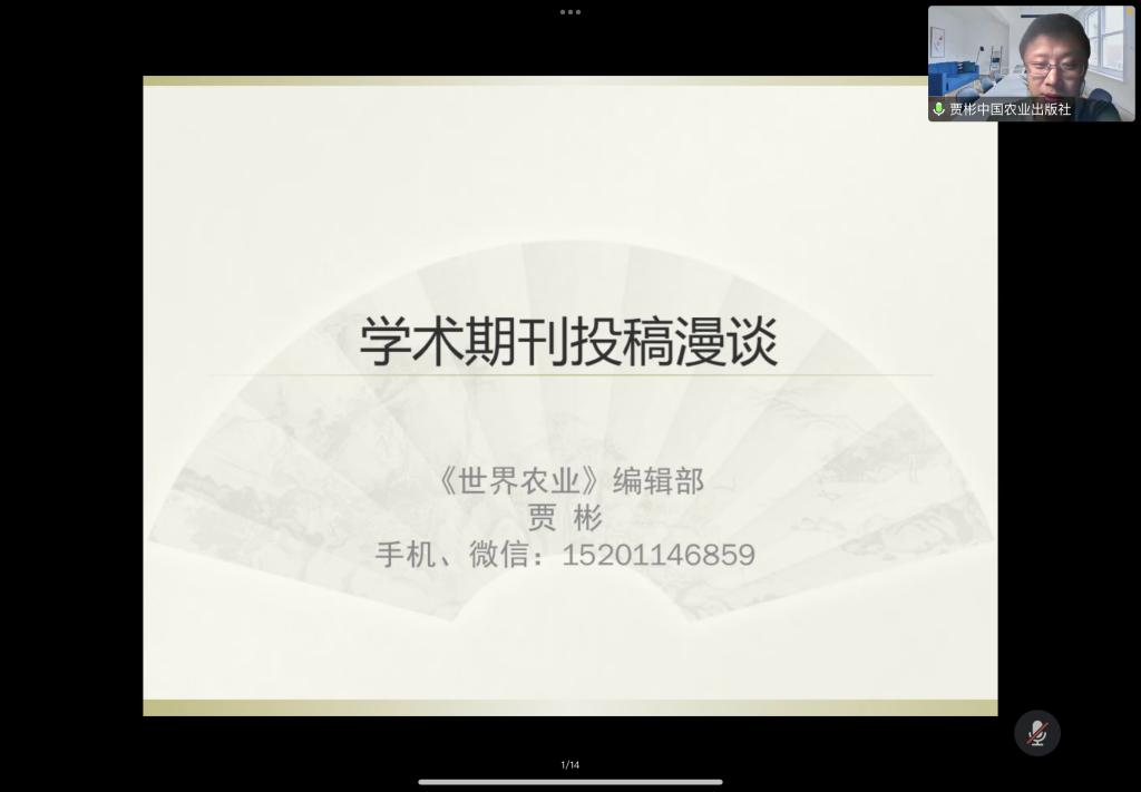 9月28日晚,中国农业出版社期刊出版分社副社长、《世界农业》执行主编贾彬研究员在线上为花都影视