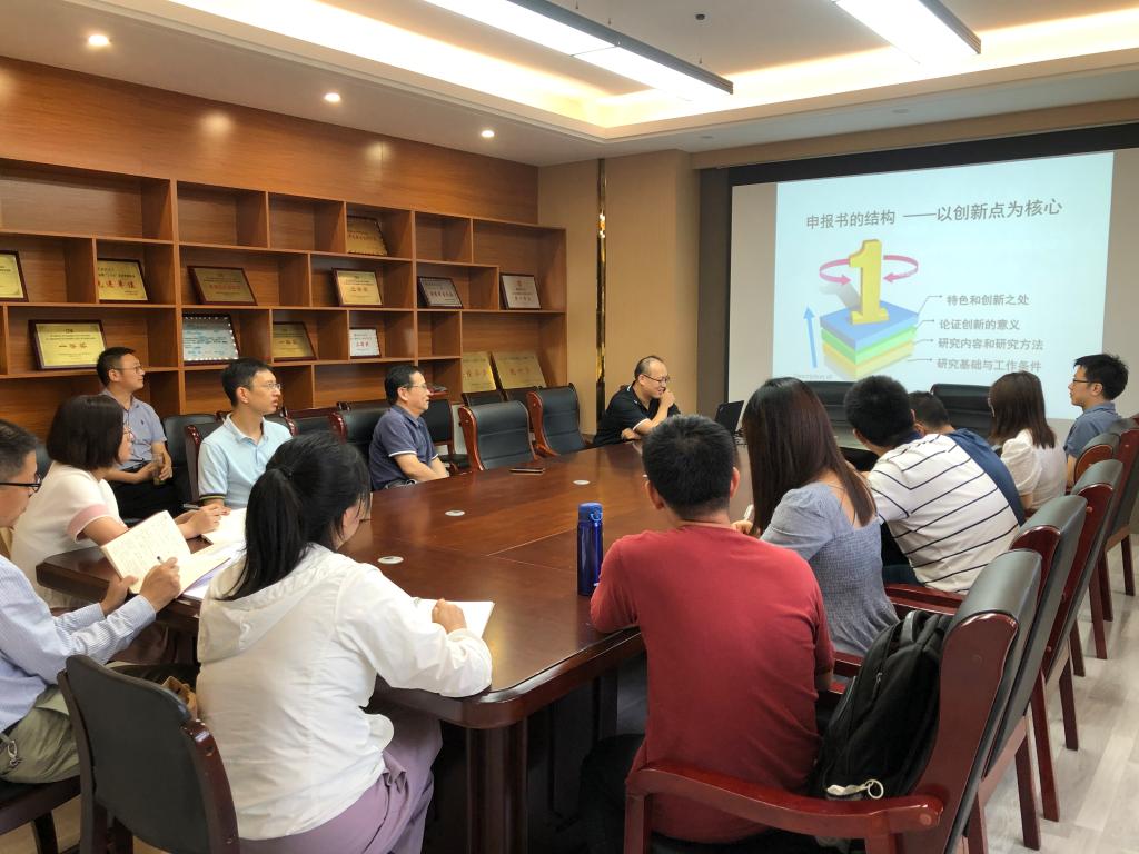 在交流会上,师磊老师结合自己申报社科基金的经验,围绕选题、研究内容、创新点和研究基础四个方面,介绍了国家基金申请中的注意事项。师老师强调,精工出细活,申报书是在日复一日的不断打磨中日益精进、逐渐完善的,建议大家尽早完成初稿,在此基础上通过自我修改、同行交流和专家指导等方式不断提高申报书质量。