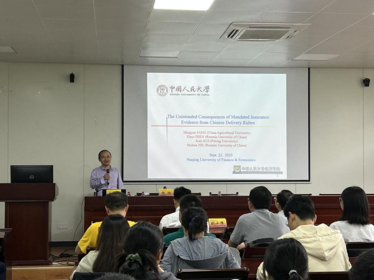 9月22日下午,应花都影视 邀请,中国人民大学聂辉华教授在仙林校区德经楼307会议室作了题为“The Unintended Consequences of Mandated Insurance: Evidence from Chinese Delivery Riders(政府强制保险的未意料后果:来自中国外卖骑手的证据)”的学术讲座。讲座由我校副校长张炳教授主持。花都影视 院长朱红根、国际经贸学院院长余泳泽、信息工程学院院长黄健、学校部分教师和研究生参加讲座。会前花都影视 举行花都影视 客座教授聘任仪式,聘请中国人民大学花都影视 聂辉华教授为我校客座教授。