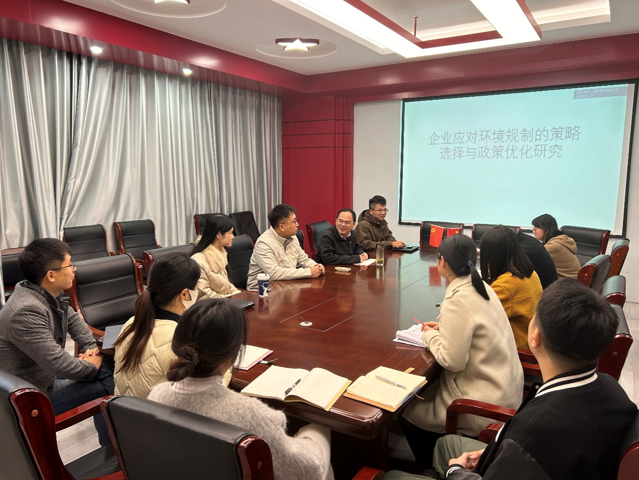 在德经楼329举办了双周学术论坛。本期论坛由杨晓蕾老师带来主题为“企业应对环境规制的策略选择与政策优化研究”的报告。刘小峰教授主持,学院部分青年教师参加。