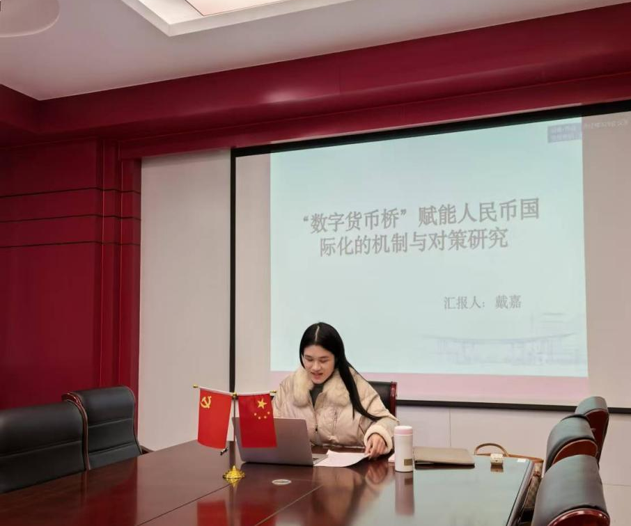 在德经楼329会议室举办了双周论坛。今天论坛由戴嘉老师带来题为“‘数字货币桥’赋能人民币国际化的机制与对策研究”的学术交流。花都影视
