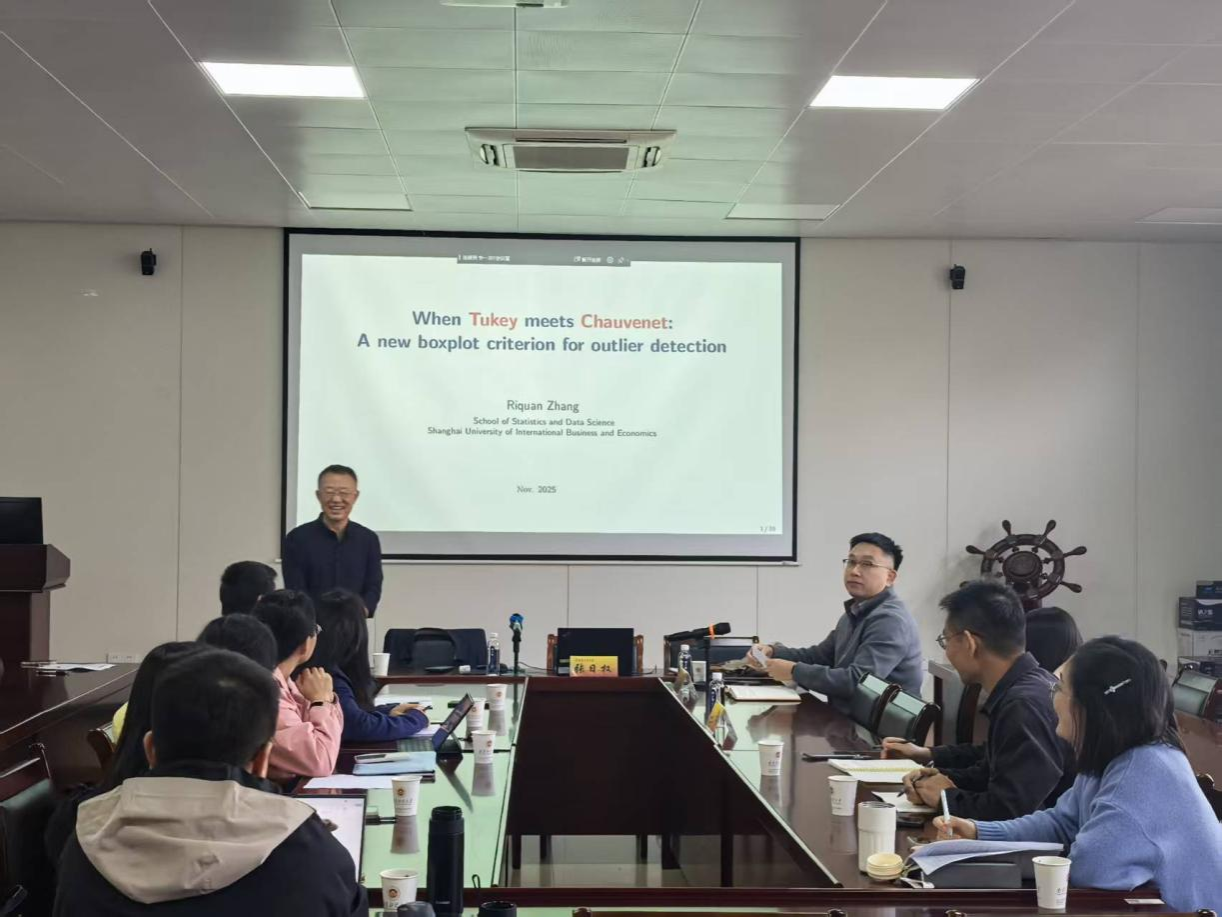邀请,上海对外经贸大学统计与数据科学学院院长、博士生导师张日权教授于2025年11月4日下午来校,作了题为“When Tukey meets Chauvenet: A new boxplot criterion for outlier detection”的学术讲座。讲座由花都影视